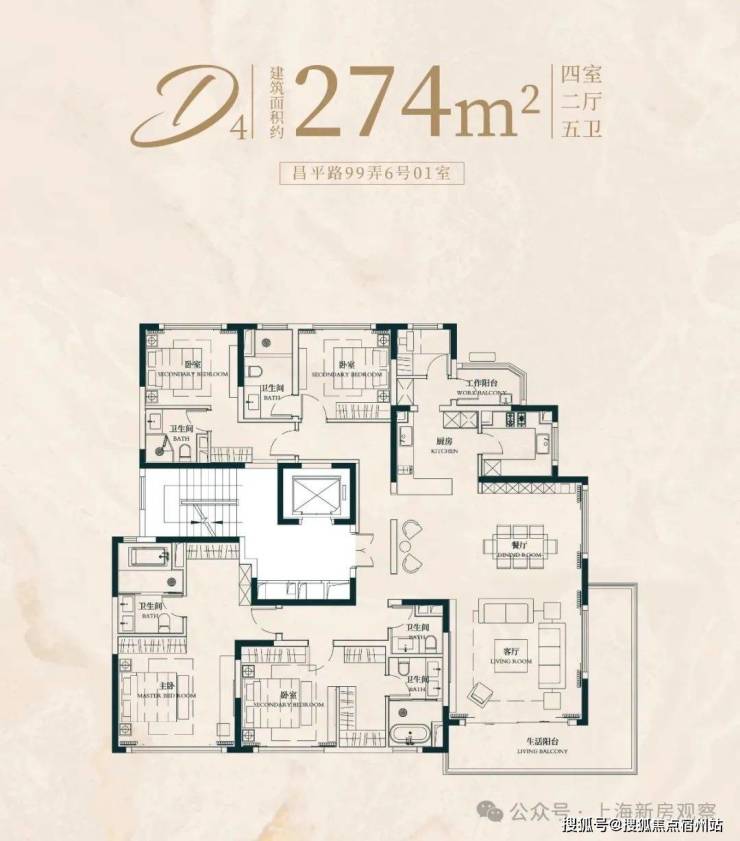 建面约274㎡4房2厅5卫户型▼