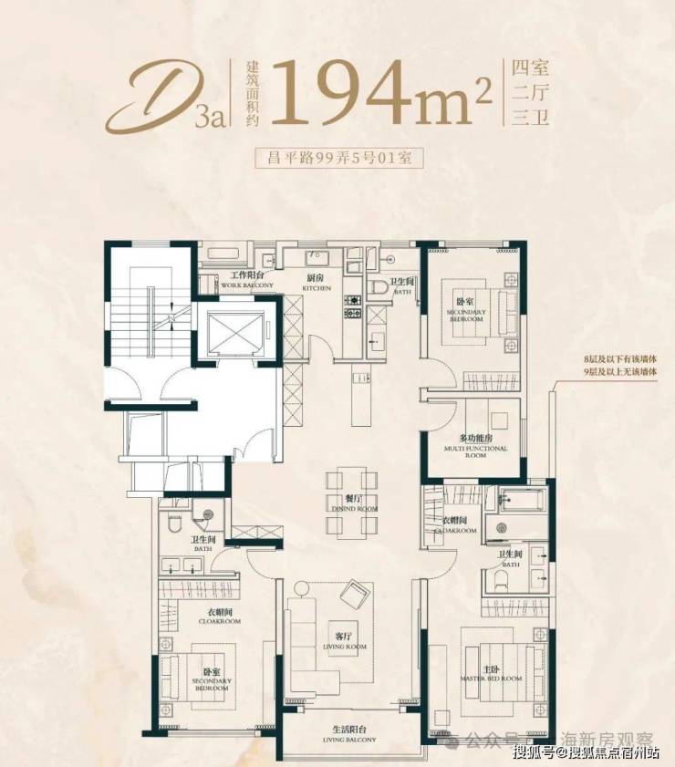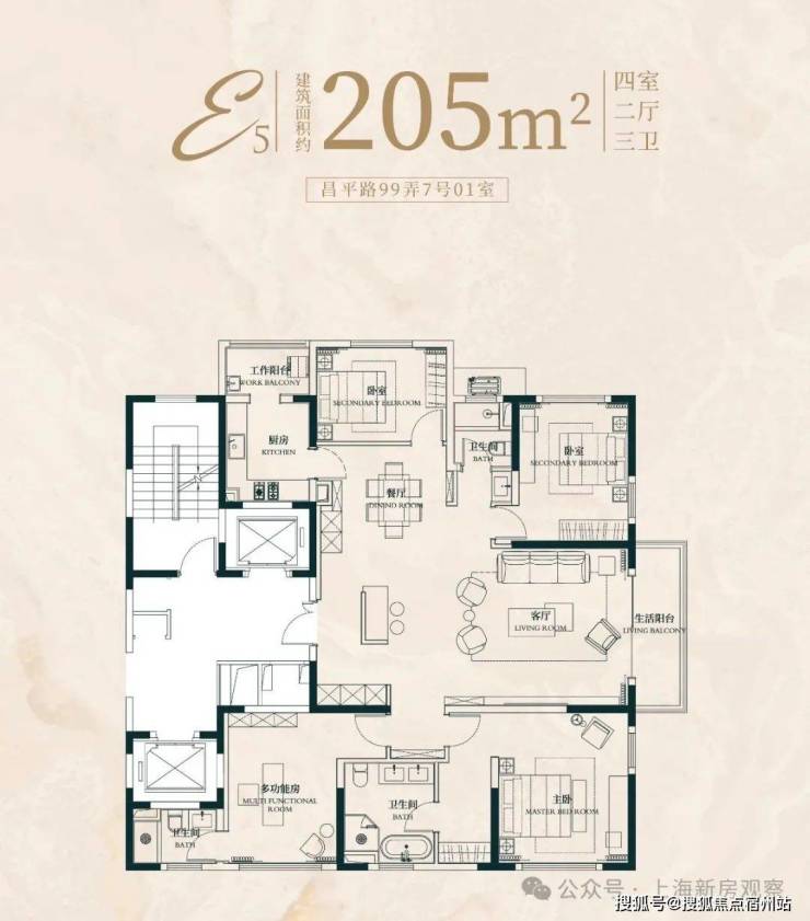 此户型最靠近苏州河,特地设计了 270度转角阳台直面苏河一线景观!4个套房设计,尊崇感十足!此户型仅有6套,珍藏属性拉满!