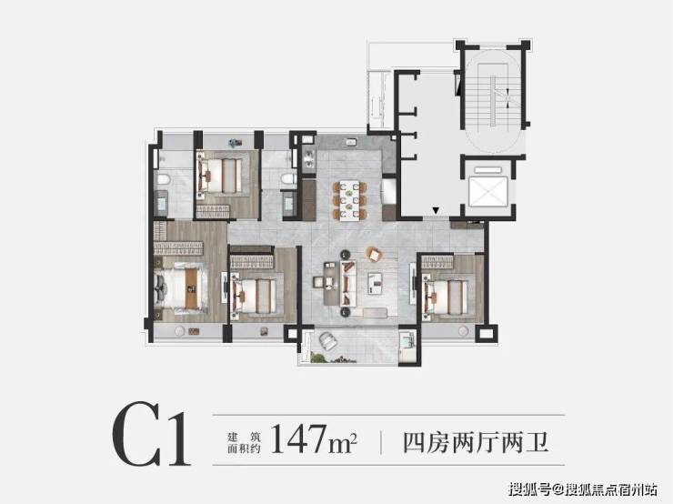 约147㎡4房2卫电梯开门对应的只有一户人家,私密性相当高。