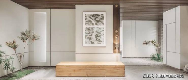 地上入户大堂采用中式经典构图方法——框景,打造未进门,先见景的效果。中国人一直讲究,生活中处处有景。框景的工艺就是能做到从任何一个框望过去都是景色,角度不同景色也不同,一步一景的效果。