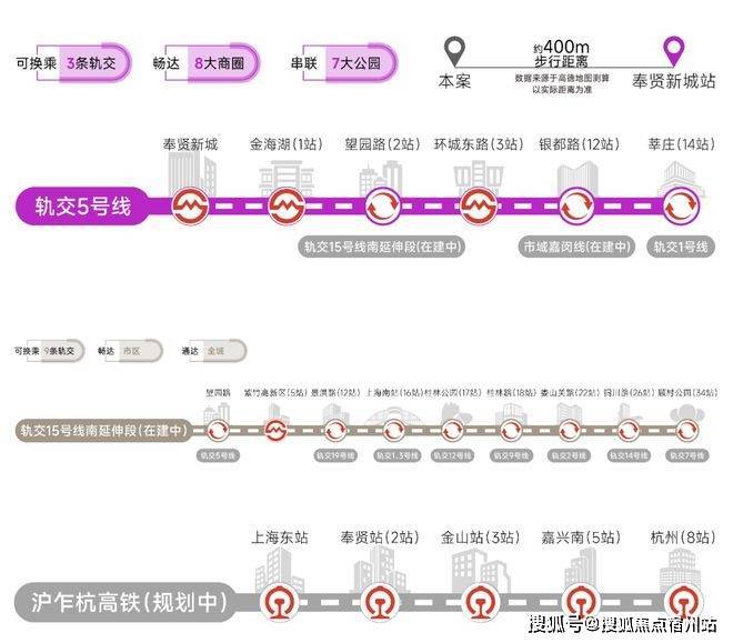 轨交网络:5号线、15号线南延伸段(在建中)、市域嘉闵线南延伸段(规划中)、沪乍杭高铁(规划中)及南枫线(在建中)