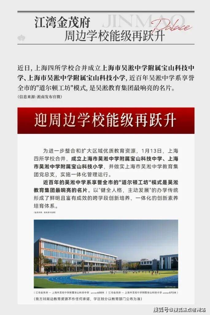 除了肉眼可见的交通利好,周边的教育也迎来利好。2026年1月13日,区域教育迎来里程碑事件:上海四所学校合并,成立上海市吴淞中学附属宝山科技中学、上海市吴淞中学附属宝山科技小学,并做实上海市吴淞中学教育集团党总支,实施一体化管理运行。