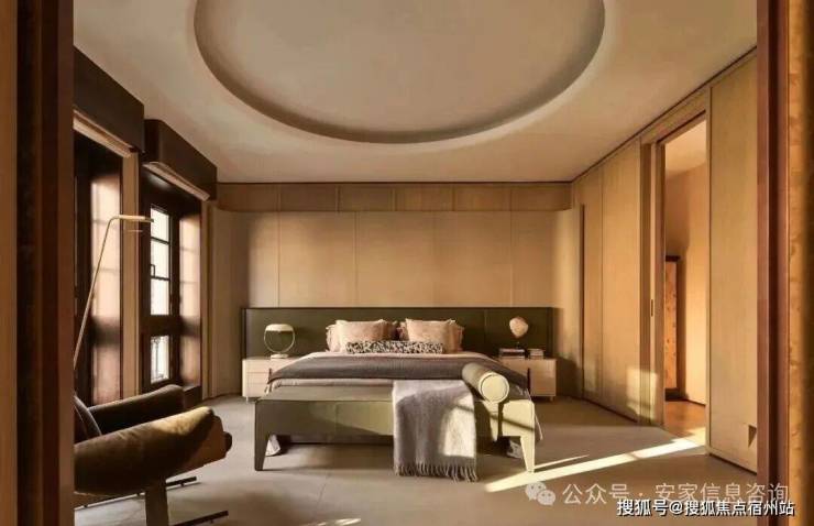 三楼整层为主卧套房,样板间设计了双开门入卧室,进入起居空间,样板间选择在这里放一些艺术装饰、设计吧台来彰显主人品味。