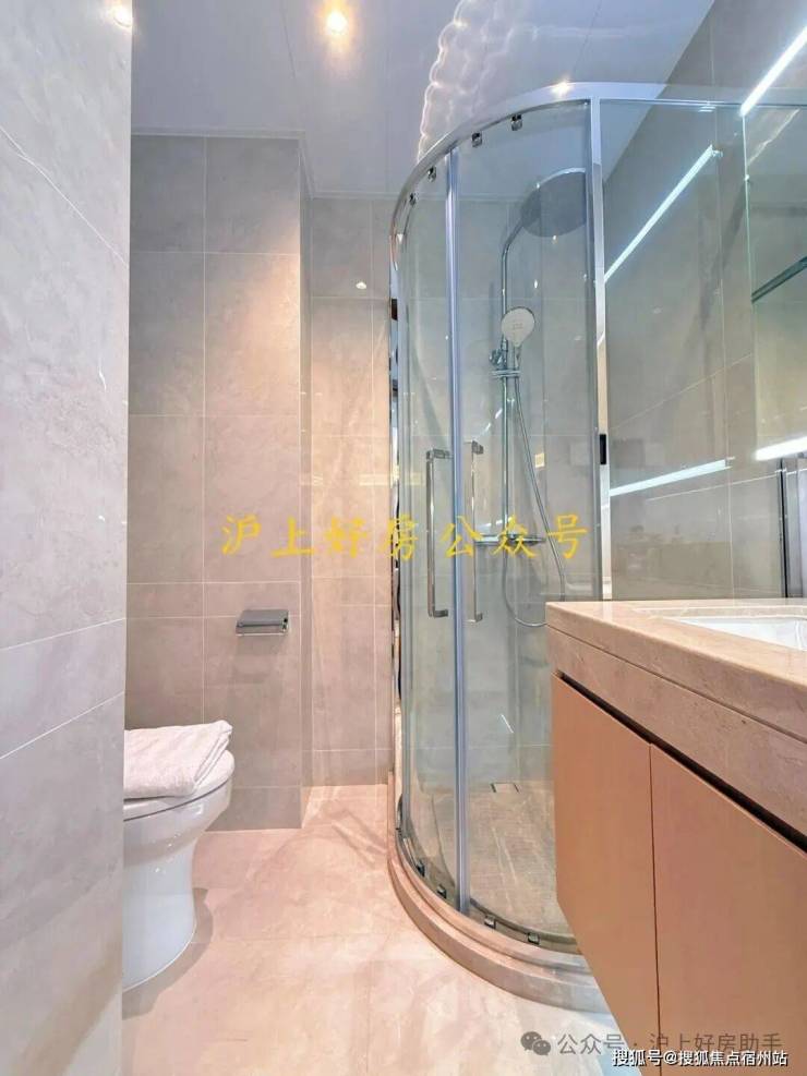 另外,一般百平米主卫淋浴房都是钻石型的,但项目是“一字型”的。“一字型”相比“钻石型”,洗澡空间更大,哪怕带着小朋友也不用挤得“转圈圈”,舒适度提高了不止一点点。