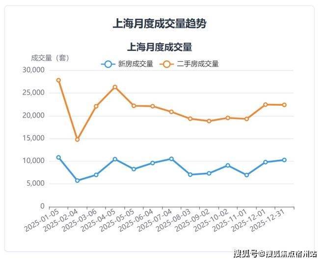 上海市场在年末呈现新房与二手房走势的短期背离。2025年12月,新房成交套数环比增长4.8%,而二手房成交套数微降0.3%,新房市场在年末表现相对活跃。