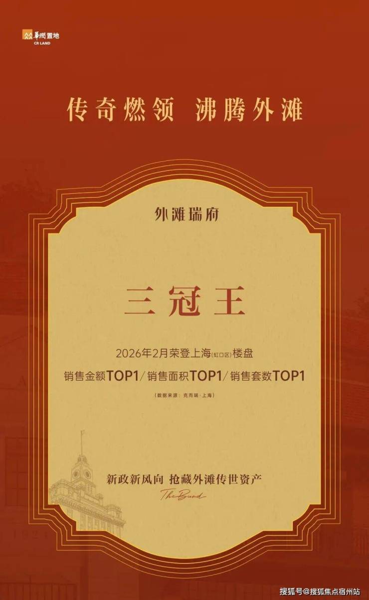 而如果你把时间再往前推到2月,会发现这并非偶然——外滩瑞府一举拿下虹口区楼盘销售金额TOP1、销售面积TOP1、销售套数TOP1,成为当月虹口“三冠王”。