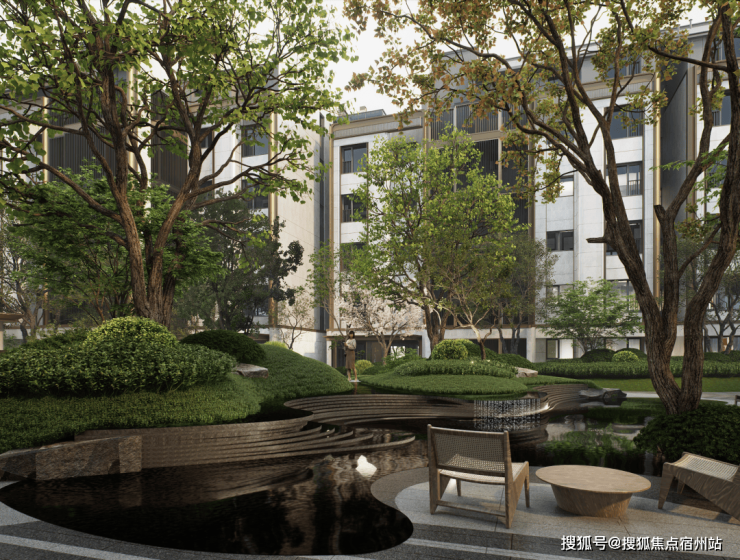 迎璞径作为归家第一重景观,以简约大气的设计,迎接业主归家;沐溪屿打造灵动水景与绿植相映的景观,让业主在漫步中感受自然的惬意;藏画庭则以精致的园林小品、错落的绿植搭配,打造静谧的休憩空间,让业主在繁华都市中,也能拥有一片专属的诗意天地。
