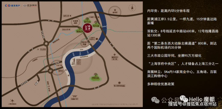雄踞上海浦西内环旁,南靠北外滩,距离黄浦江岸约3.5公里15分钟车程直达陆家嘴商务中心