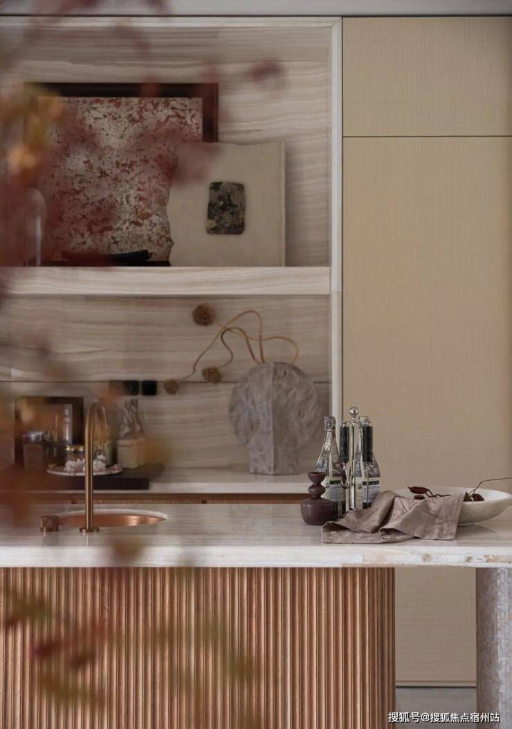 石材的冷冽在台面上铺展成一片静止的湖面,它们如远古岩层的拓片,用织毯纤维的柔软中和石质的硬朗,以人工秩序感中和石材的野性。