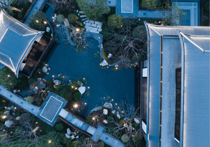 汲取“唐·山水别业”精粹,境取《辋川图》,匠造三进礼序,打造前阁后园山水相依的辋川画境。