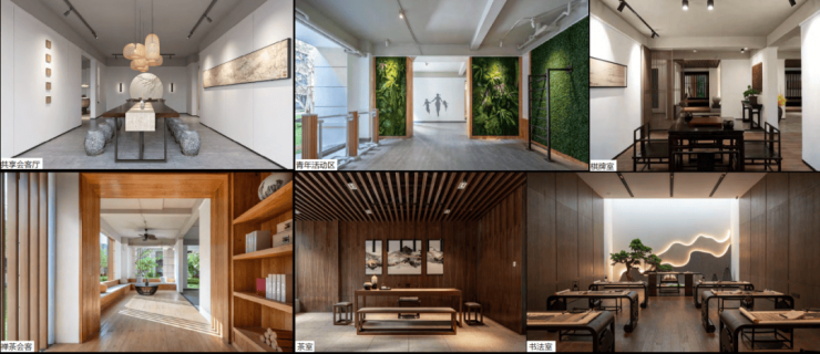 居山水观天地,是中国人的最高理想,漫御道而行,入院即是入画,叠山理水,层层递进,舒展青绿山水画境。