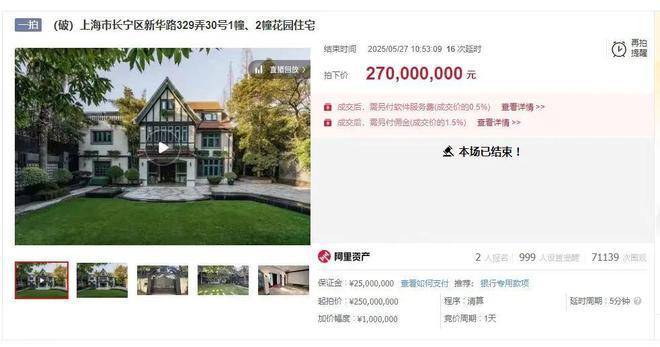今年5月27日,新华路一幢535㎡花园别墅法拍,以2.7亿元成交,成交单价达到50.46万元/㎡。
