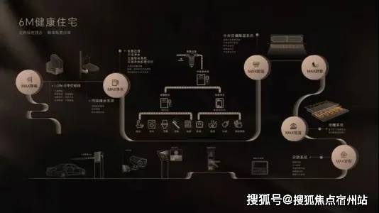 全屋配置6M健康智能住宅系统。这个智能系统系统涵盖降噪、净水、除湿、恒温、安智等多方面: