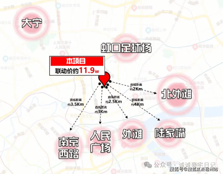 项目直线距离人民广场约3公里,直线距离外滩约2.5公里,直线距离南京西路约3.2公里,直线距离陆家嘴也仅约3公里,直线距离北外滩更是仅约2公里。同时背靠虹口龙之梦商圈和大宁商圈。