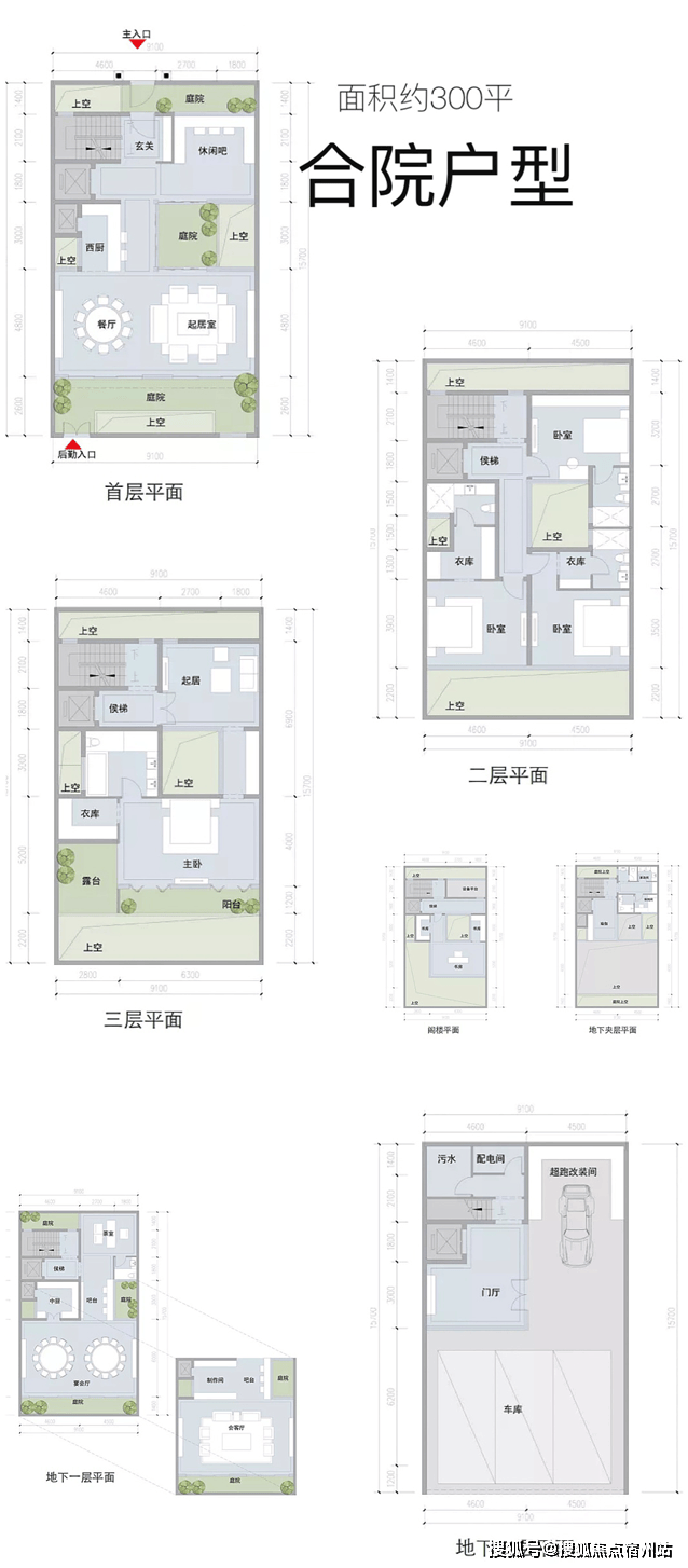 呼应刻在国人骨子里的庭院情节,户型设计中创造性的加入多重、立体花园概念(多重开放空间如庭院/露台/阳台/采光井等),庭院层层为退、与露台相呼应,在平面和空间上创造出多层次亲近自然的可能。