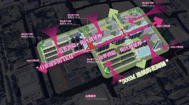 这些丰富的生活场景,则由两条景观轴线串联: 一条是约300米的连续花园轴;一条是约600米的日常漫步街区。与此同时,项目在街角处还打造了多个口袋公园!