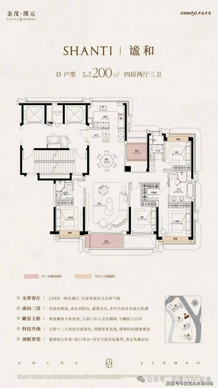 科技住宅系统:项目最大的卖点是金茂的“五衡三智”科技系统,能实现室内恒温、恒湿、恒氧,提升居住舒适度。