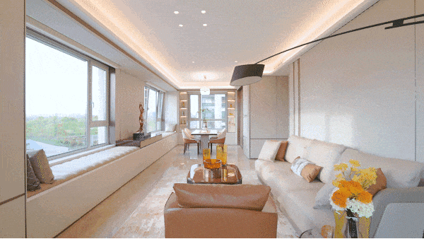 当全屋灯光亮起的刹那,仿佛整个世界都变得柔软而温暖。光线照耀与微风浮动在空间中交流汇集,产生涌动心间的感官奢享。