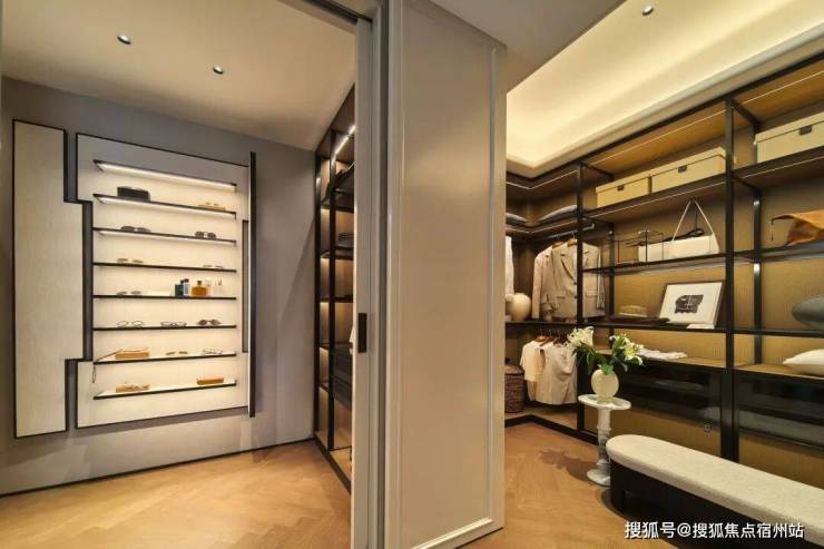 主卧套房内,还配备了 豪华的双衣帽间,男女分区,让男女主人都能拥有私密的收纳空间。