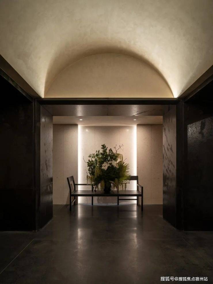 电梯厅的公区,灯光以及材质上都呈现高级和艺术调性,没有很花里胡哨,但却低调奢华,归家的仪式感拉满。