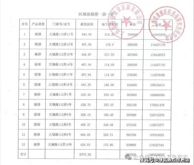 一房一价表