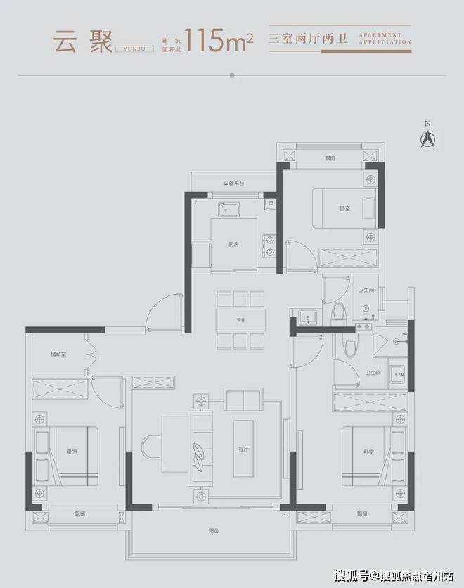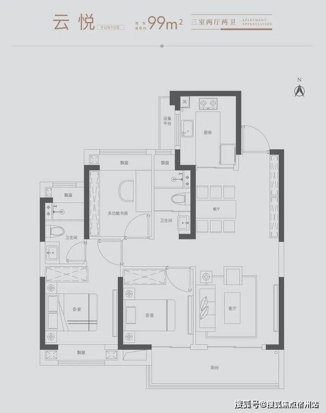 雅致三房:满足三口之家所需,北向房间可改造书房,理想生活一步到位