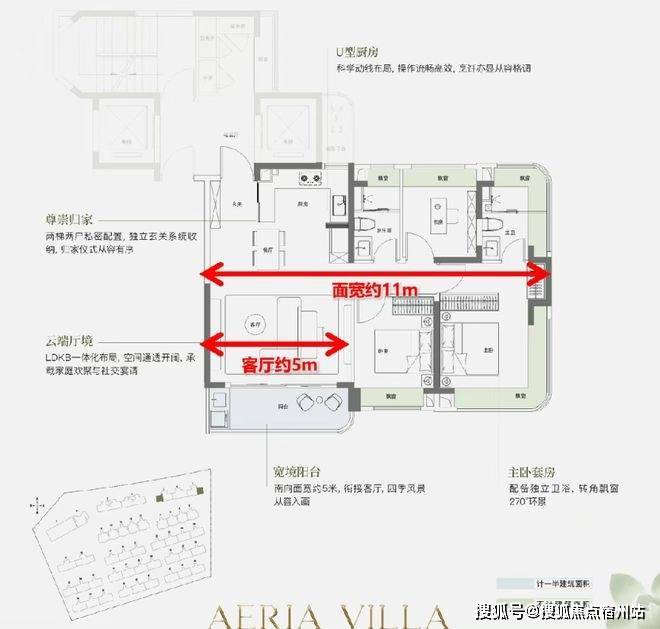 首先,南向整体面宽达到约11米(市面上普遍在9-10米)✅✅联发金海雲墅售楼处电话:400 - 8824 - 258✅✅,客厅面宽约5米,搭配同尺寸的南向宽景阳台,形成小型“横厅+跑道阳台” 的组合拳。