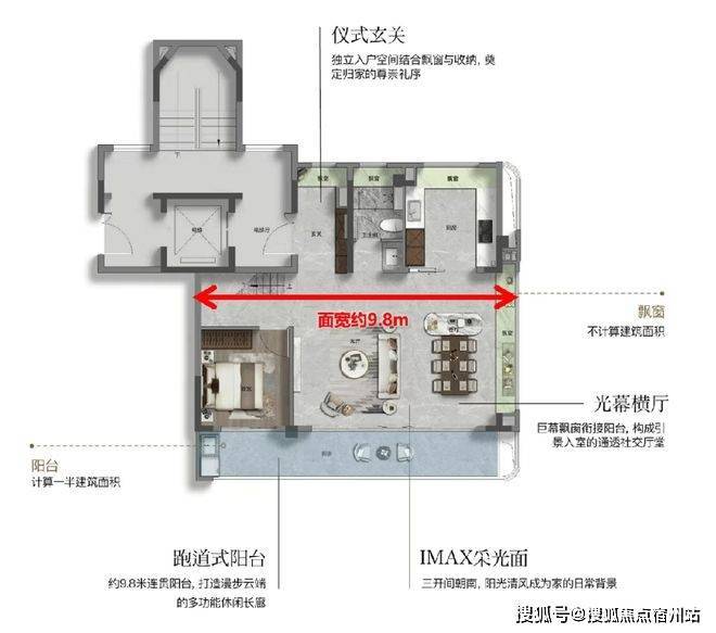 其次,这一户型配置了约9.8㎡的飘窗和约7.2㎡的阳台,✅✅联发金海雲墅售楼处电话:400 - 8824 - 258✅✅总附赠面积高达约13.4㎡。这样的附赠空间让户型的实得率突破了86%,而市面上同面积产品的实得率最高也只有75%。