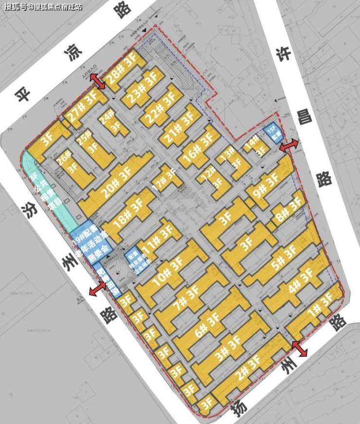地块东至许昌路、西至汾州路、南至扬州路、北至平凉路,原来是汾州里所在位置,临近地铁18号线平凉路站。