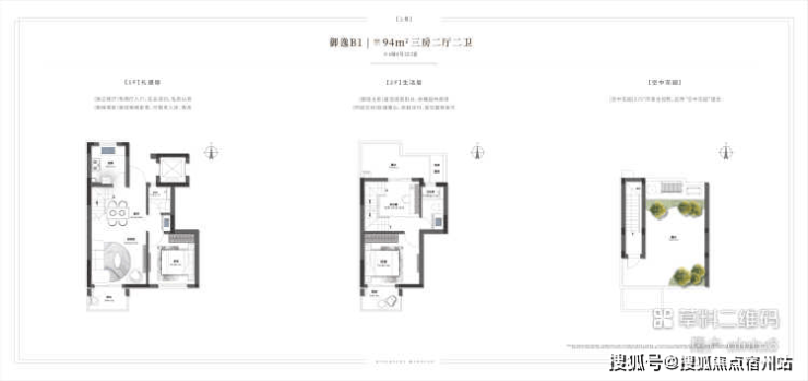 上叠:实现 2+1房2卫 设计,长辈房位于三层、配卫生间,规避上下楼梯的麻烦。 南向阳台与餐客厅一线贯通 ,享受充沛阳光。 四层豪华主卧、北侧连接露台, 空中露台及顶层阳光平台,可量身定制成一方幸福天地。