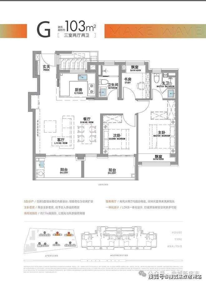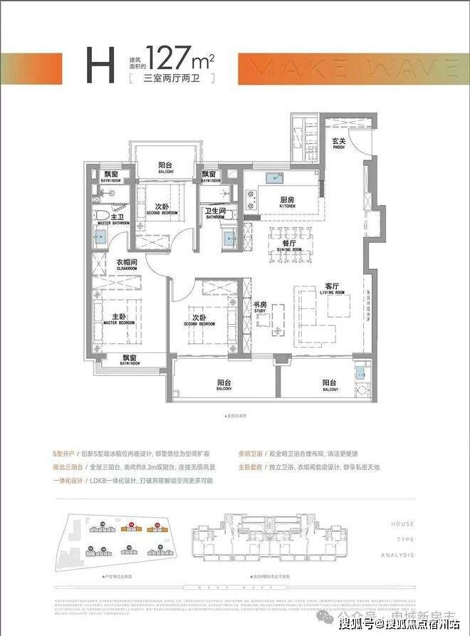亮点设计:客厅阳台与北向书房窗户形成 “穿堂风”,夏季凉爽;厨房紧邻餐厅(餐客一体,视觉延伸感强),主卧飘窗可定制收纳柜,卫生间带镜柜收纳,满足三口之家储物需求;