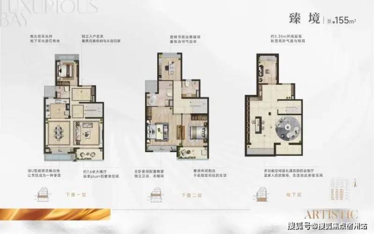 【复地·星愉湾】 的叠墅,上叠约139m²、下叠约155m²,具体到每一叠又各有韵味,向理想的惬意墅居生活致敬。项目户型图如下: