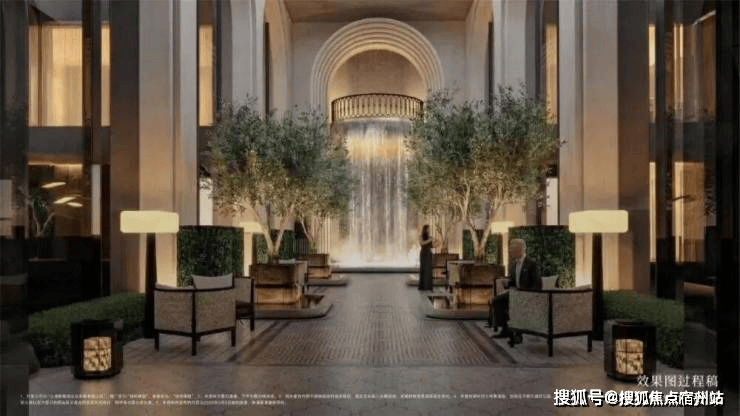 建筑设计上,项目采用新中式风格,融合东方礼序与现代美学,搭配大面积玻璃幕墙与金属线条,外观简约大气,质感十足,既彰显东方人居的雅致韵味,又契合当代人居审美,同时保证良好的采光与观景效果。外立面甄选全铝板+玻璃+石材组合,高窗墙比设计,最大化引入自然采光与景观视野,让室内空间更加通透明亮,同时提升了建筑的保温隔热性能与耐用性,历久弥新,彰显高端品质。社区入口采用礼仪性设计,恢弘大气的入户大堂,搭配精致的景观装饰与水景,让归家仪式感拉满,每一次归家都如同穿越花园的旅行,彰显主人的尊崇身份。