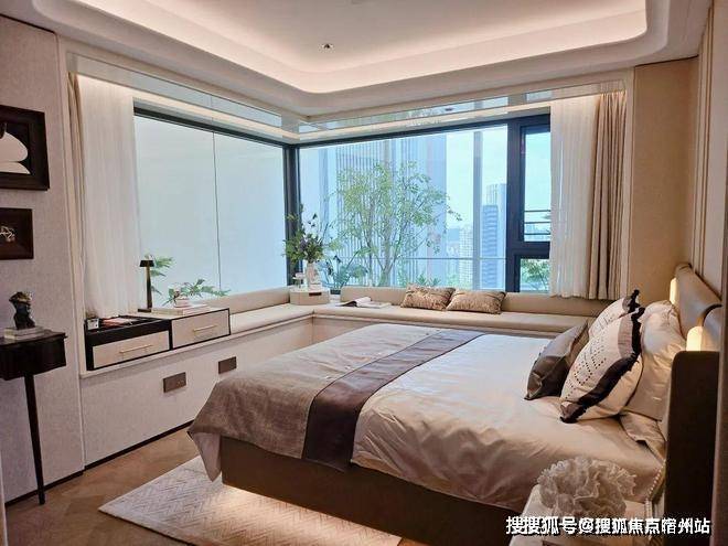 海上清和玺售楼处预约电话:400-8824-198主卧套房设计,皮革造型的床背景墙也是交付标准,台盆为唯宝(或同等档次)、龙头则为科勒(或同等档次)复古龙头,马桶为高仪智能马桶(或同等档次)。海上清和玺售楼处预约电话:400-8824-198
