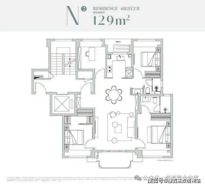 2#总高12F-13F,首层部分为社区配套+沿街商业+架空层,户型为建面约189-199㎡4房2厅3卫,两梯两户,层高约3.15米;