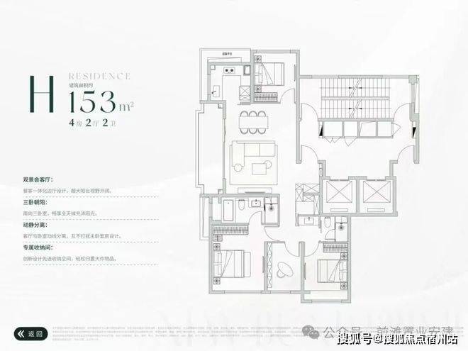 10#总高13F,户型为建面约199-236㎡4房2厅3卫,两梯两户,层高约3.15米。