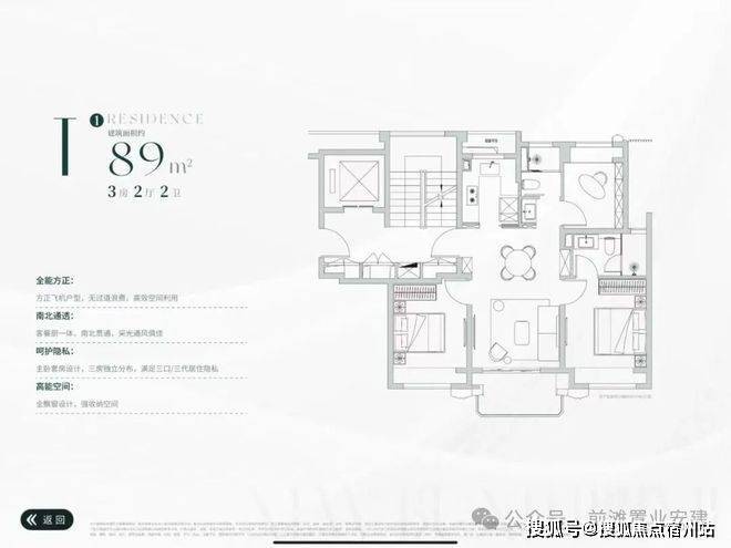 20#、22#总高6-7F,首层为商业,户型为建面约89㎡3房2厅2卫,一梯两户,层高约3.05米;