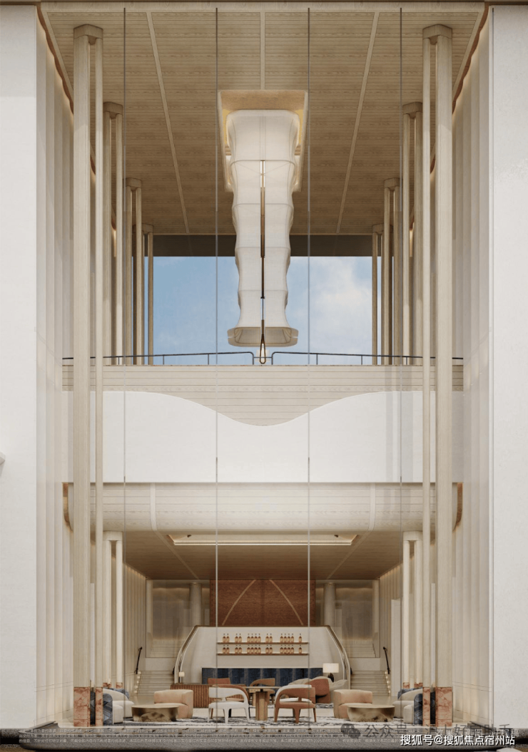 全嘉定首个峡谷式意境的立体下沉庭院,设计也多采用弧形线条,施工工艺复杂。每一层片墙的可视面均由沙漠风石材打造,采用拉槽、曲面打磨等复杂工艺,让厚重的奢华材料也能够形成轻盈、温润的观感。