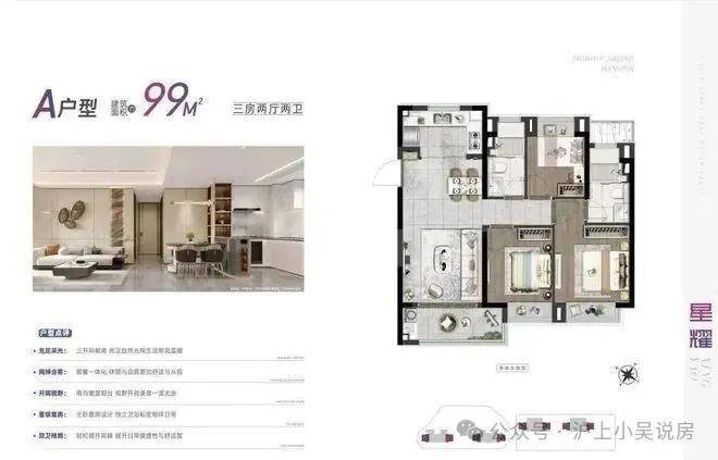 在目前市场上,99㎡户型往往是刚需与初改的“重叠带”,更需要兼顾实用性与舒适度的平衡。