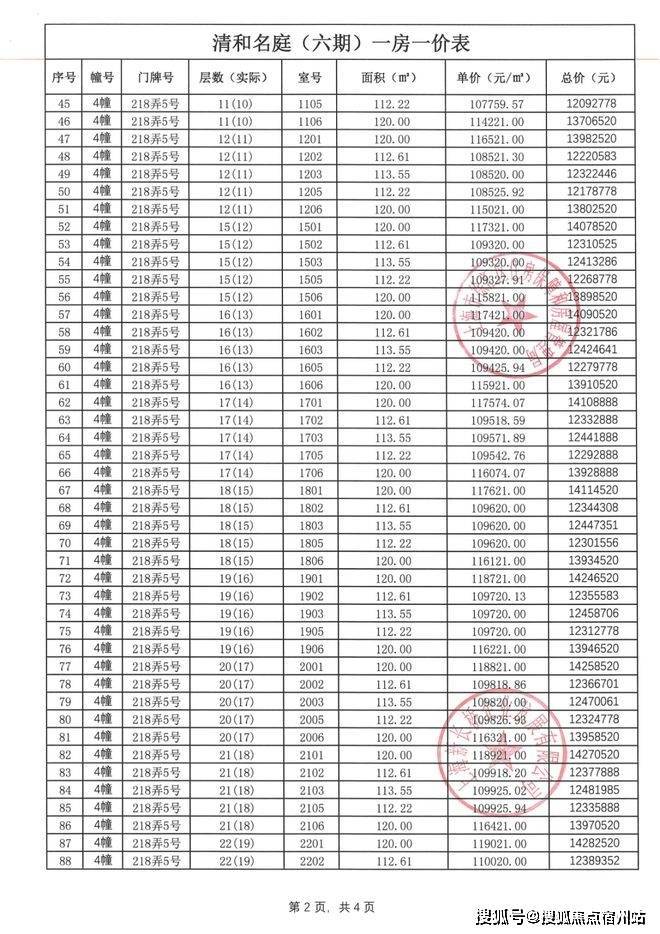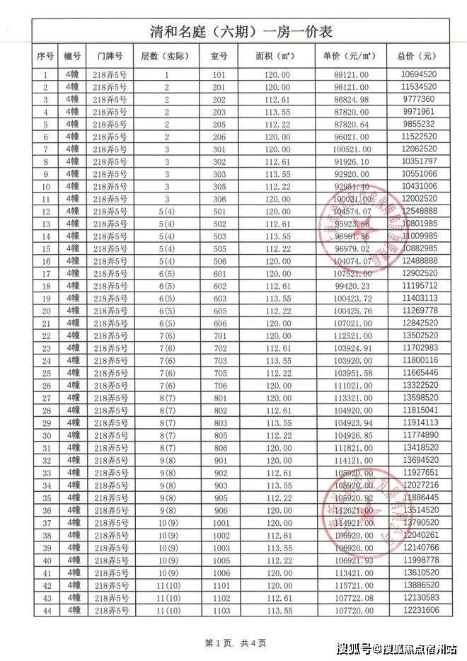 前期一房一价表公示 :