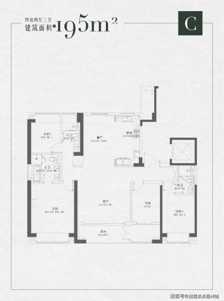 项目别墅是大头,且都是拼接型别墅:地上三层,地下一层,从430㎡-560㎡-690㎡三种,都是四房四厅五卫的设计。