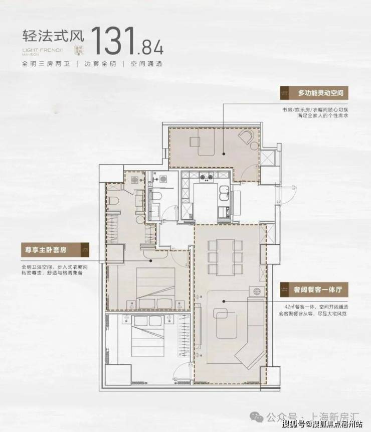 户型设计上,打破公寓常规暗间的局限,项目全部设计成全明2房或3房格局,做到没有一个暗间的居住空间,并全系标配主卧套房+双卫配置,提升居住配置。