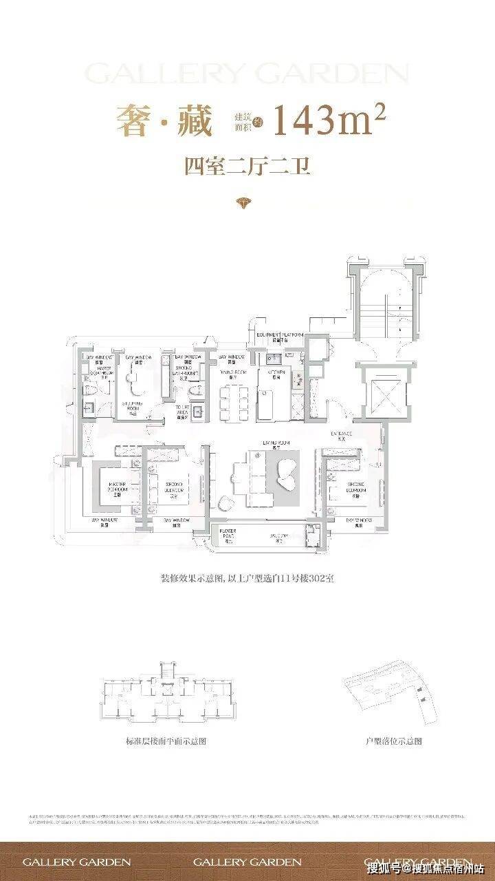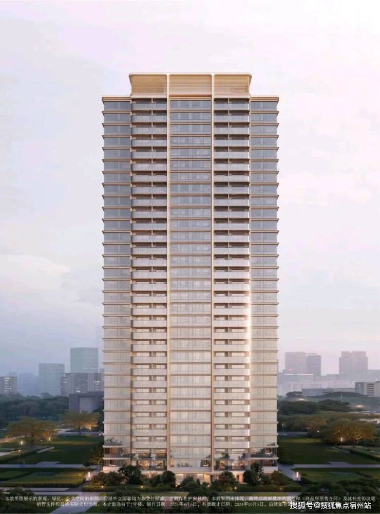 外立面:基座石材+主立面大面积玻璃及古铜色窗框+香槟金格栅塔冠