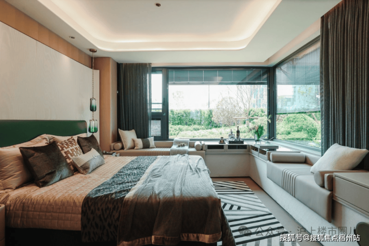 反观中环铂樾,所有卧室兼具舒适居住尺度, 4个房间都能做卧室, 实现家庭居住人口的迭代升级。尤其主卧全套房设计,搭配270°转角飘窗和独立卫浴,私密性和舒适度简直爆表。