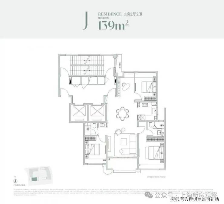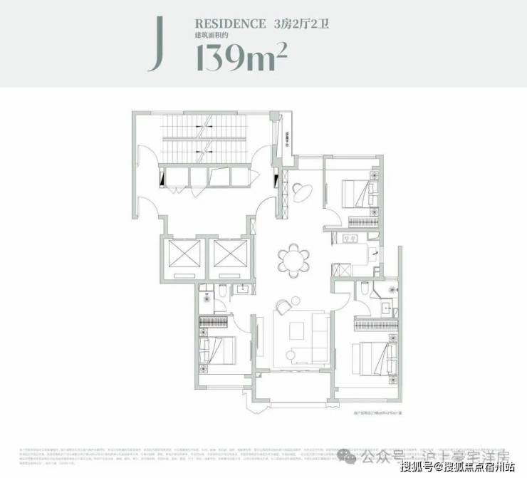 建面约139㎡3房:滨江百变户型
