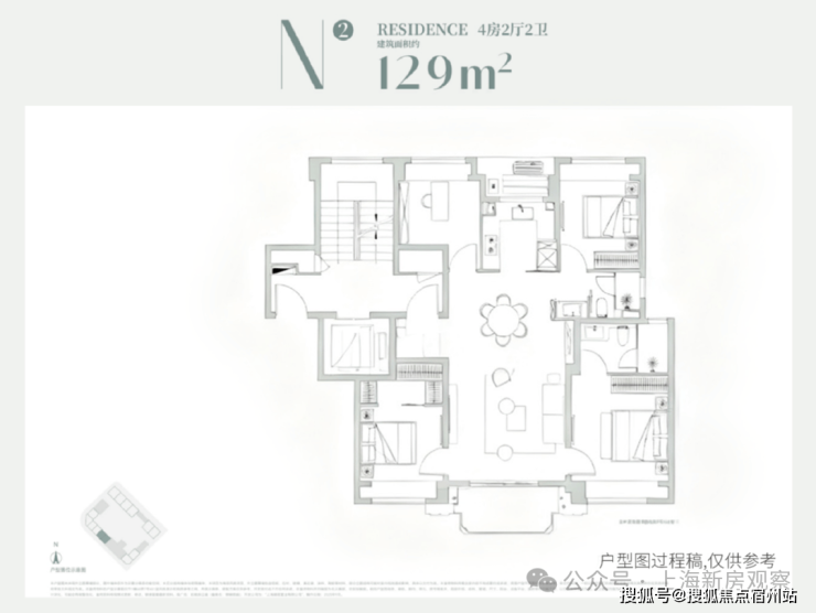 机遇2:高性价比4房 ——滨江4房普遍190㎡起步,而项目129㎡4房不仅总价可控,更以四叶草设计实现空间利用率与居住舒适度的平衡;