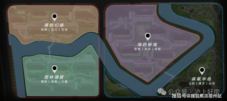 比如,三座岛屿社区都有不同主题,并设置了 非常丰富的景观节点 。