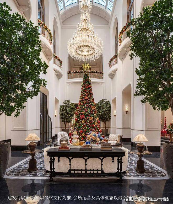 首层的孔雀厅同源上海华尔道夫酒店的摩登精髓,星空穹顶下,水晶吊灯与艺术装置交相辉映。