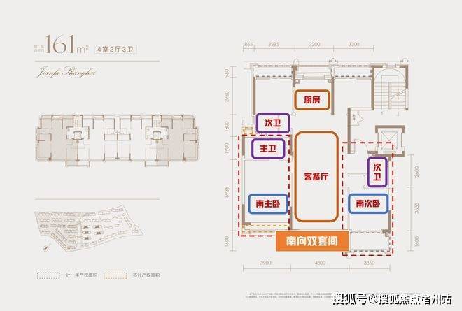 最后,“三卫”配置的魄力。在160㎡这个面积段,市面上大多数产品依然停留在“两卫”的舒适区,但建发海宸却奢侈地规划了三个卫生间。这意味着提供南向双套间设计!主卧套房的尊崇、父母或客房的独立、以及公共区域的从容,彻底打破了早晚高峰的洗漱尴尬。