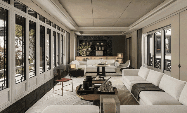 并且,园林中轴景观依中轴铺设,不仅设对景峰石、蜿蜒水街、太湖山石、亭台轩廊等景观节点,还以宽广山石庭园和辽阔水景,还原宋代传承百年的雅致生活韵味。